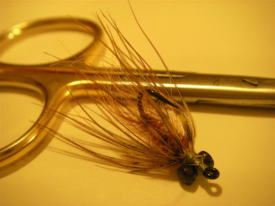 (7) I threw around big pike streamers with fair dedication, but caught only three small hammer handle pike. Toward the end of the trip I was trying to round up some smallies in deeper water – fishing a full sink line and a SE MN brand muddler minnow #8 (the goal was to get the body of the line and thus the retrieve down deep while floating a fly up a bit) when I came up with two walleyes and two pike from a nice rocky drop. Ironic that the best pike (still not what you’d call “BIG”) came with no steel leader, and ate a trout fly.